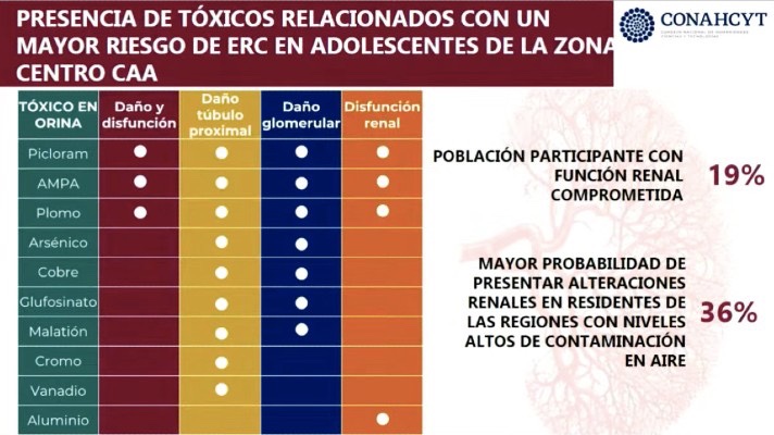 Con estudios de sangre, orina, tejidos y otros fluidos de población aledaña a la Cuenca del Alto Atoyac, los científicos del Conahcyt ya comprobaron que en dicha región los cuerpos de las personas en general están contaminados con metales –arsénico, níquel, plomo, cobre, vanadio, yodo, selenio, estroncio, litio– y plaguicidas –malatión, glufosinato, glifosato, picloram, AMPA, molinato, paratión y 24-D–, entre otros elementos altamente tóxicos.