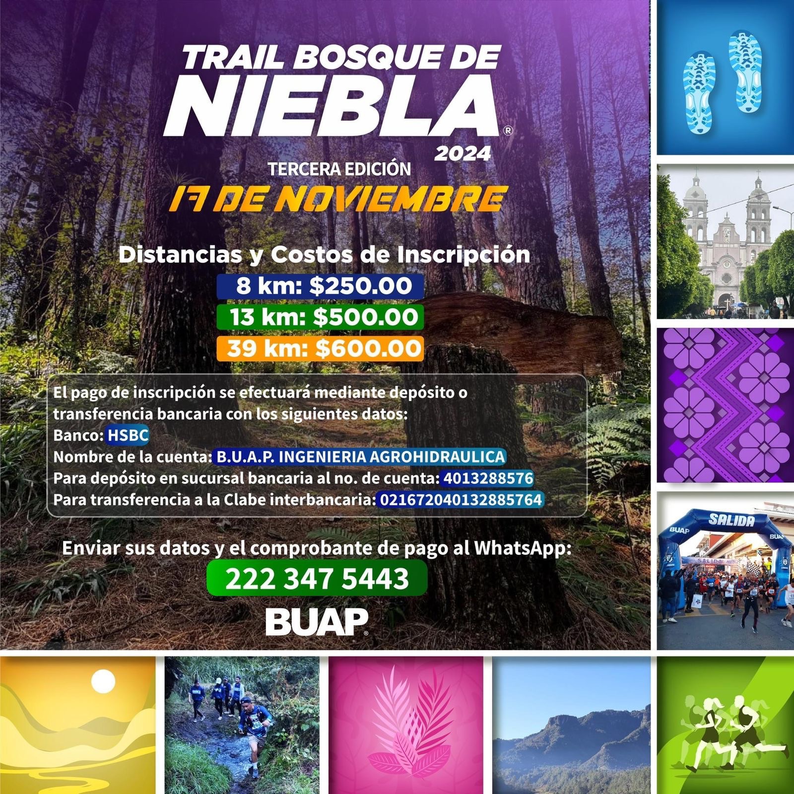 En colaboración con el Gobierno Municipal de Teziutlán se llevará a cabo la tercera edición del Trail Bosque de Niebla de la Benemérita Universidad Autónoma de Puebla (BUAP) 2024. Misma que se llevará a cabo el domingo 17 de noviembre en la Plaza Cívica de este Pueblo Mágico apartir de las 07:00 horas, se contara con la presencia de la Rectora, María Lilia Cedillo Ramirez.