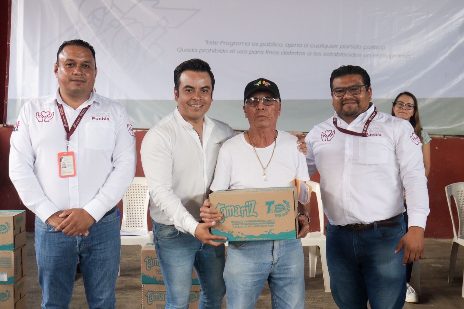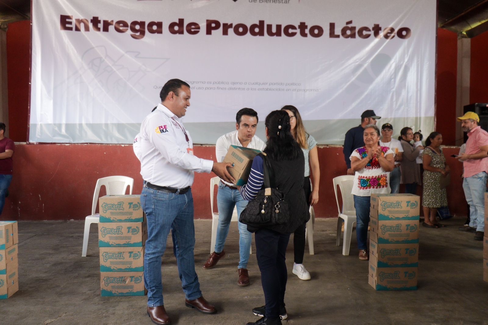 El presidente electo de Tlatlauquitepec, Juan Manuel Téllez Salazar, realizó la entrega de producto lácteo a familias del municipio, en colaboración con el gobernador Sergio Salomón Céspedes Peregrina y la Secretaria de Bienestar Elsa Ruiz Betanzo.