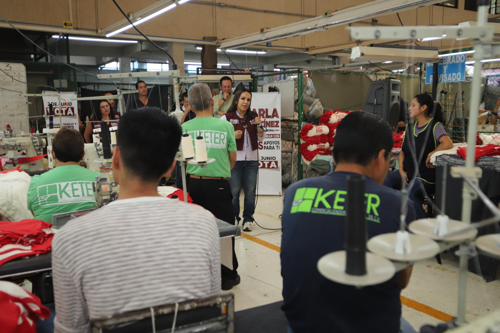 “Por ello, en todas las fábricas que hemos visitado, implementaremos un programa piloto, para que personal del gobierno que presidiré, -gracias a su voto de confianza este próximo domingo dos de junio-, venga a sus centros de trabajo para inscribirlos en cualquiera de todos los programas que ustedes requieran y acorde a sus necesidades, y cuando lleguen, también se los traeremos hasta acá, para que así puedan beneficiarse de todos estos apoyos, que con mucho compromiso me voy a dedicar a gestionar para beneficiar a más familias y de esta manera puedan vivir mejor”.