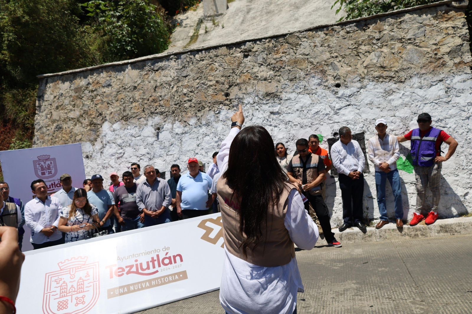 Como parte de una gira de trabajo, la alcaldesa encabezó la entrega de muros de contención en puntos considerados de riesgo, como el Arco Francia, donde se colocaron pilotes para evitar deslaves que amenazaban viviendas. También se realizaron obras similares en el Circuito Juan Pablo Segundo, en Coyotzingo, y en el camino antiguo a Xoloateno, atendiendo solicitudes de vecinos.