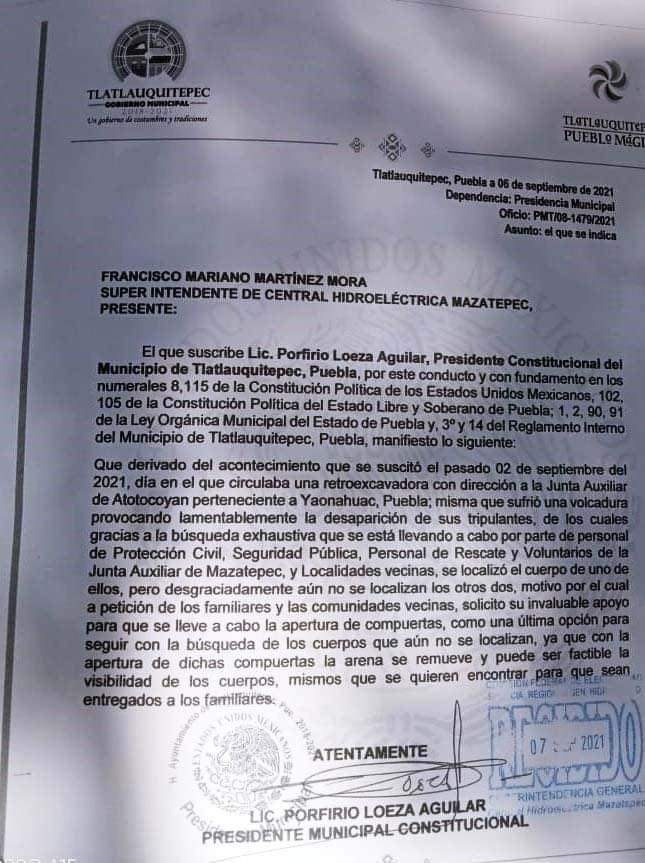 El Ayuntamiento mantuvo el operativo de búsqueda desde el día del accidente y después de recorrer las márgenes del río, solicitó vía oficio a la Central Hidroeléctrica, la apertura de compuertas con la esperanza de que la corriente del agua ayudara a remover la arena.