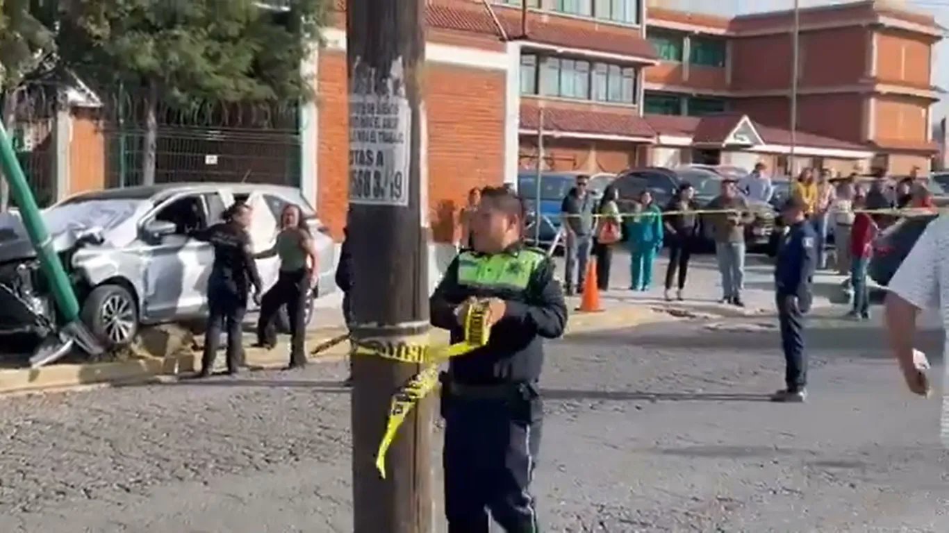 Las autoridades mencionaron que el presunto delincuente detonó el arma contra el conductor de un vehículo color gris, quien perdió el control de su auto e impactó contra un poste que se encontraba frente a la institución educativa