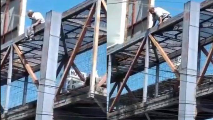 Usuarios en redes sociales difundieron el video en el que se observa al señor sobre el puente, mientras que decenas de transeúntes le gritan “¡No se aviente, no se aviente!”.