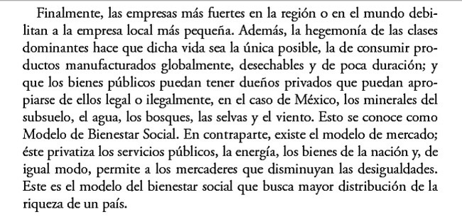 Como solución a la desigualdad se plantea un “Modelo de Bienestar Social”, aunque el párrafo que lo explica también tiene serios errores de redacción: