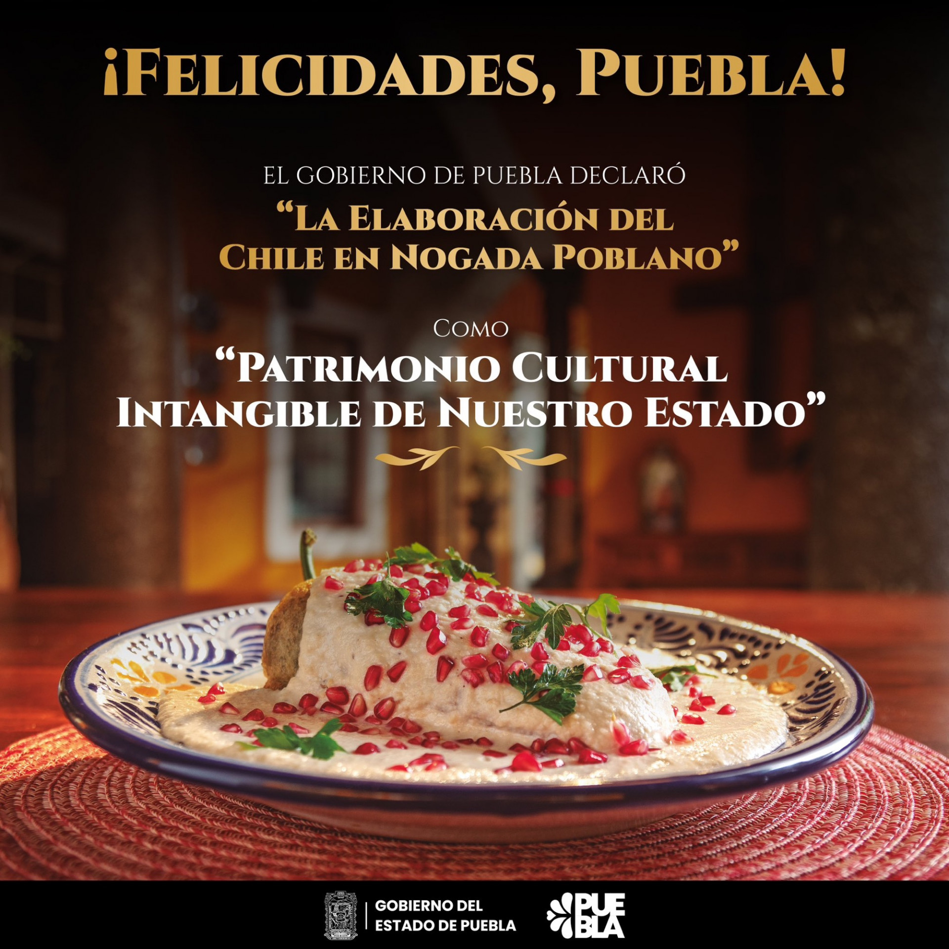 La elaboración del Chile en NogadaPoblano ha sido declarada como Patrimonio Cultural Intangible del Estado de Puebla.
