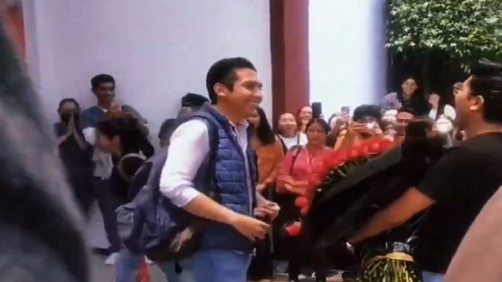 Joven declaró su amor a su compañero afuera de universidad en Puebla: con mariachis...