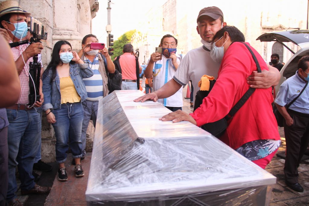 Por la noche acudió a Palacio de Gobierno a solicitar apoyo para trasladar el cuerpo de su hijo a Veracruz, de donde es originario y donde ella y el resto de su familia radican.