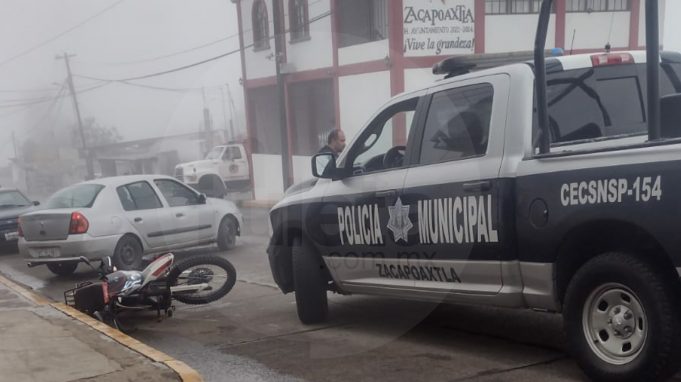 Alrededor de las 10 de la mañana de este sábado un motociclista junto con su pareja que circulaba sobre la carretera Zacapoaxtla-Cuetzalan a la altura de la estación de bomberos fueron impactados por una patrulla de la policía municipal de Zacapoaxtla.
