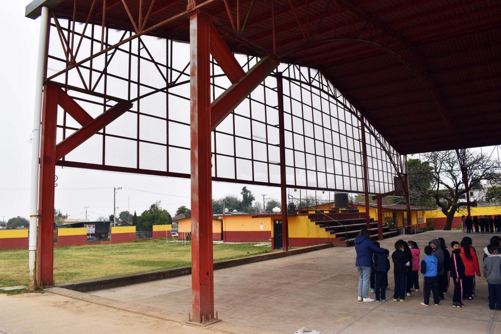 El Presidente Municipal Porfirio Loeza Aguilar, inauguró este 19 de enero, la obra de construcción de estructura cubierta de policarbonato en la escuela primaria “Francisco I. Madero” de la Junta Auxiliar, la cual tuvo una inversión de 320 mil pesos, con la aportación de 40 mil pesos de padres de familia.