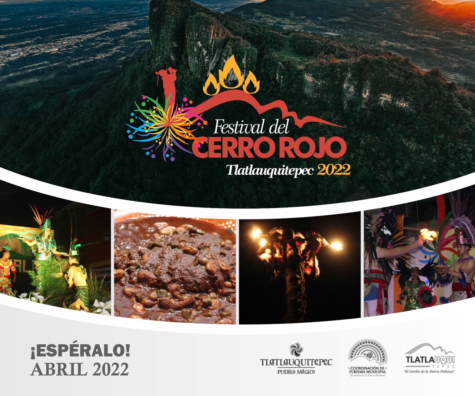 Para el mes de Abril y también después de la Pandemia, se retoma el festival del Cerro Rojo, el cual estará enmarcado por presentación de grupos culturales y artísticos que se integrarán a la promoción de atractivos naturales y arquitectónicos de Tlatlauquitepec.