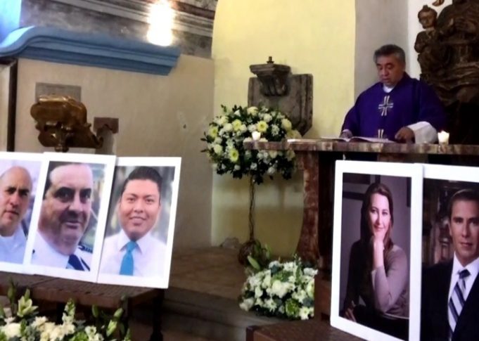 La misa la ofició el padre Francisco Vázquez, en una iglesia de la capital poblana, quien pidió orar por el eterno descanso de Martha Erika Alonso Hidalgo, Rafael Moreno Valle, Héctor Baltazar Mendoza, Roberto Coppel Obregón y Marco Antonio Tavera Romero, quienes perdieron la vida el 24 de diciembre de 2018.