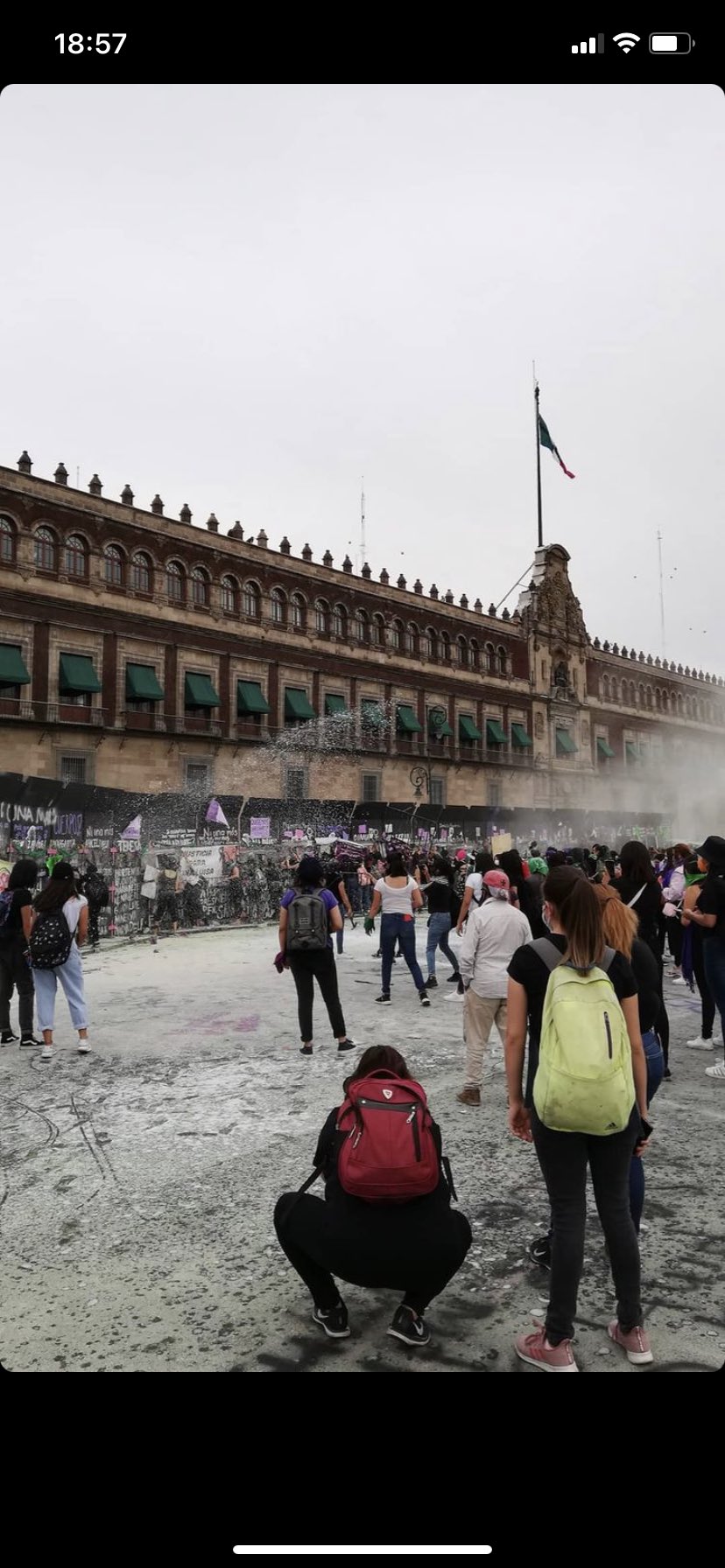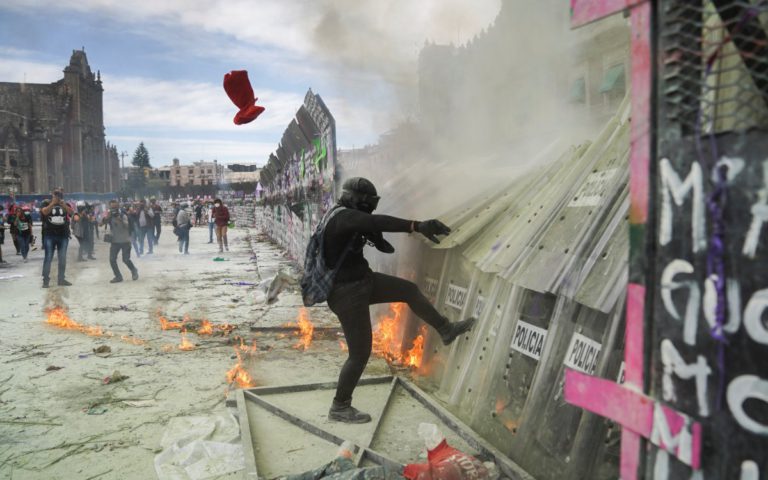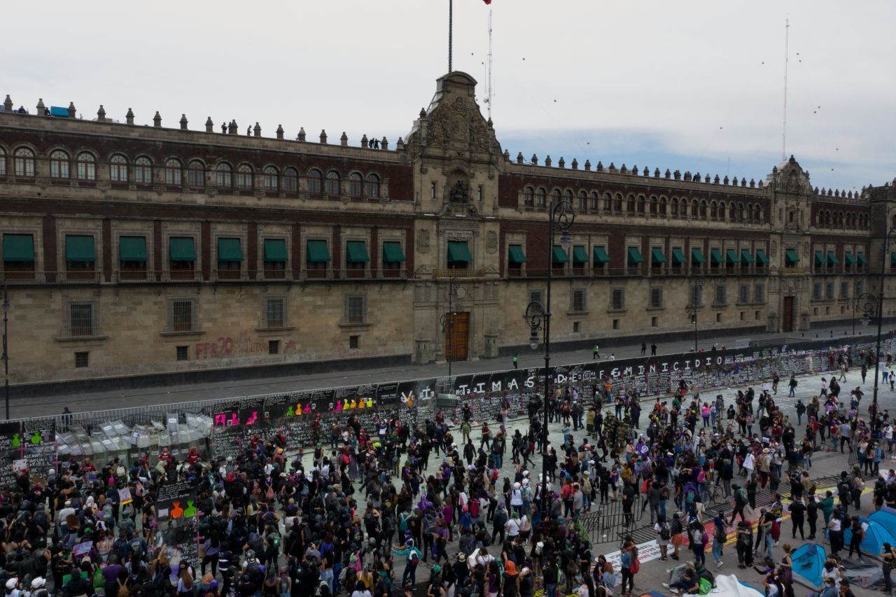 A través de redes sociales la dependencia capitalina informó que las manifestantes se encontraban en la Plaza de la Constitución, donde derribaron vallas metálicas que protegían el Palacio Nacional.