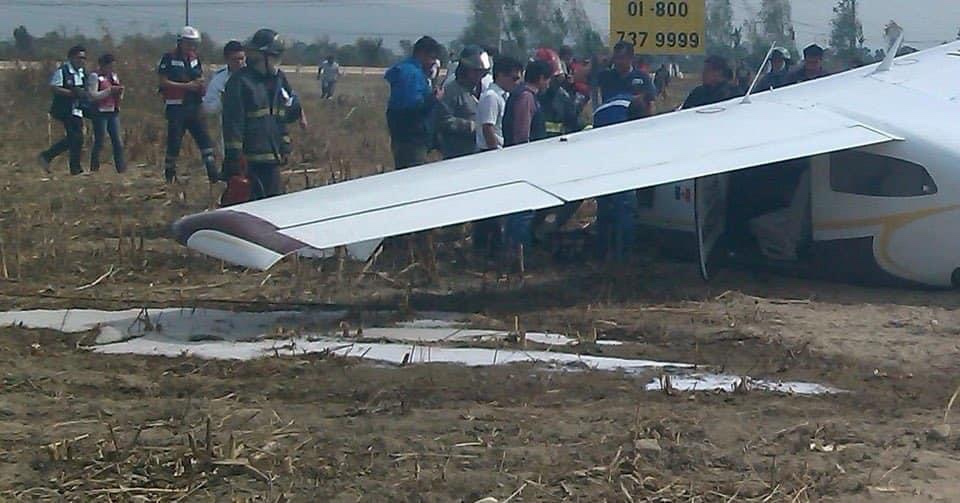 De acuerdo con un reporte preliminar, la aeronave no pudo despegar de forma adecuada y fue cuando se precipitó, sin embargo, sus tripulantes no sufrieron lesiones de gravedad.