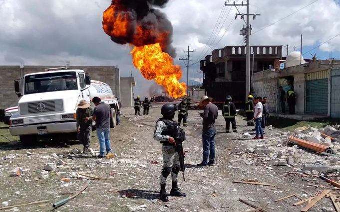 La Guardia Nacional informó que la llamarada pudo haber sido ocasionada por una supuesta toma clandestina de gas LP. Detalló que está brindando seguridad perimetral para facilitar las tareas de los cuerpos de emergencia.