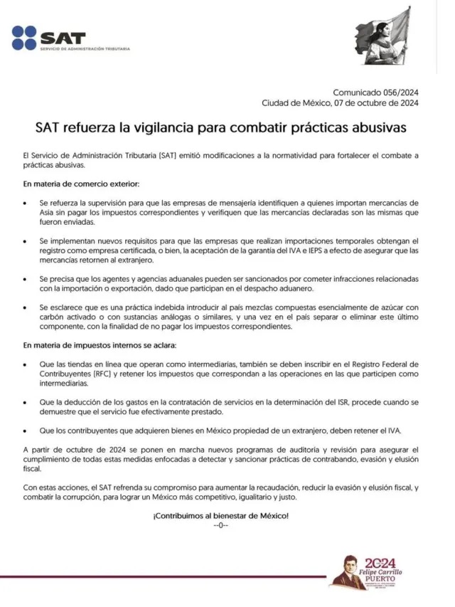 El SAT anunció que va a exigirle a este tipo de plataformas su regularización en el Registro Federal de Contribuyentes (RFC). Esta medida busca combatir el contrabando y la evasión fiscal.