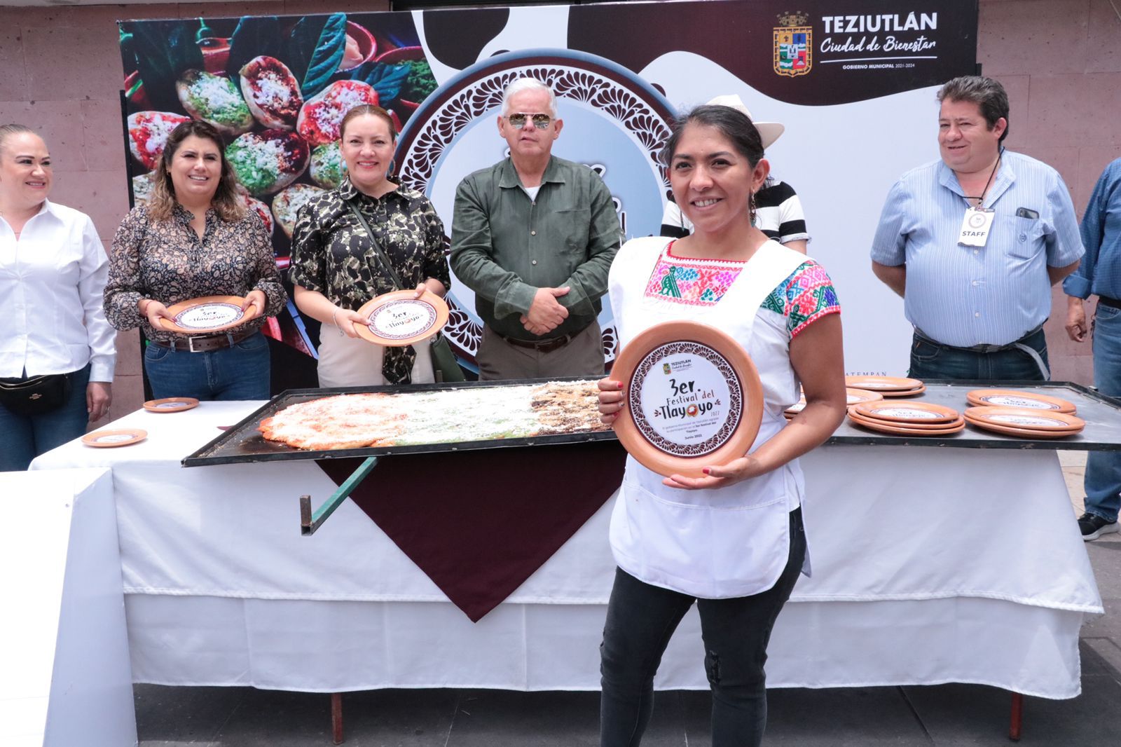 María Luisa Salazar García, expositora de este festival agradeció a nombre de todos los artesanos, expositores y municipios participantes todo el apoyo y solidaridad del alcalde Carlos Peredo y autoridades municipales de Teziutlán para la realización de este evento que promueve el desarrollo gastronómico, económico, cultural, social y turístico en nuestra ciudad, además de mencionar en la realización del tlayoyo más grande se utilizaron alrededor de 20 kilos de masa, alverjón, manteca y las autoridades municipales apoyaron con la habilitación de un comal grande para cocer este platillo típico, tomando alrededor de 3 horas su preparación.