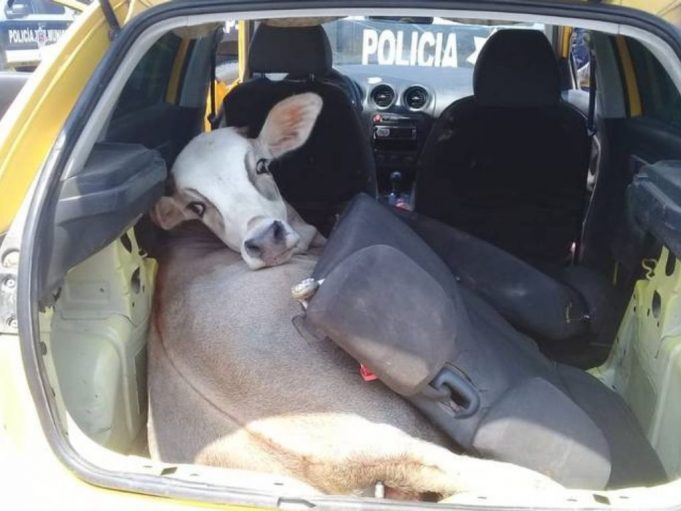Vaya sorpresa de llevaron unos policías de Tabasco cuando en medio de un retén de rutina para combatir el transporte de armas o drogas, se encontraron una vaca en el interior de un vehículo.