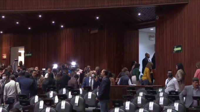 Los legisladores del PAN, PRI y PRD tomaron sus objetos personales, se levantaron de sus curules y abandonaron la sala.